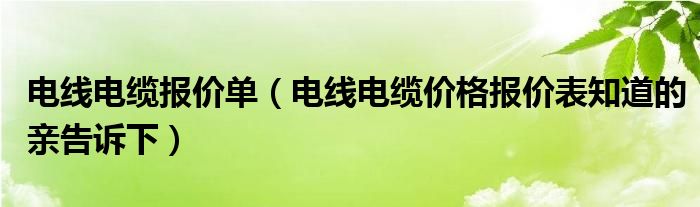 电线电缆报价单(电线电缆价格报价表知道的亲告诉下)