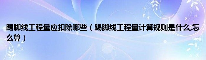 导读 大家好,精选小编来为大家解答以上的问题。踢脚线工程量应扣除哪些,踢脚线工程量计算规则是什么,怎么算很多人还不知道,现在让我们一起来