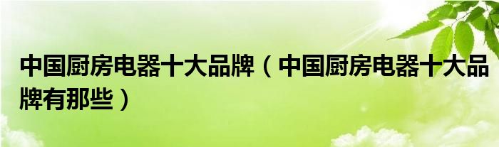 中国厨房电器十大品牌(中国厨房电器十大品牌有那些)