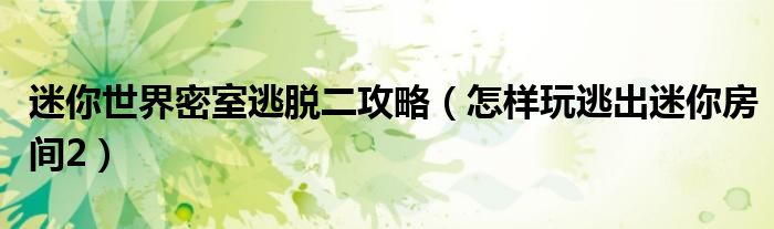 迷你世界密室逃脱二攻略(怎样玩逃出迷你房间2)