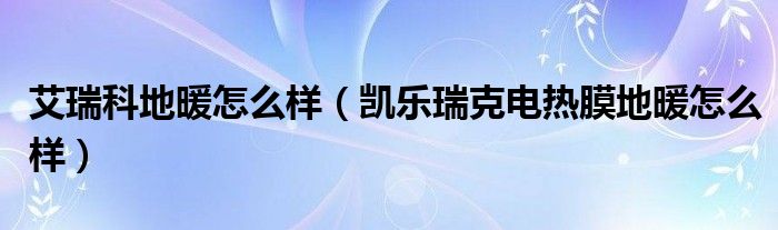 大家好,精选小编来为大家解答以上的问题。艾瑞科地暖怎么样,凯乐瑞克电热膜地暖怎么样很多人还不知道,现在让我们一起来看看吧!
