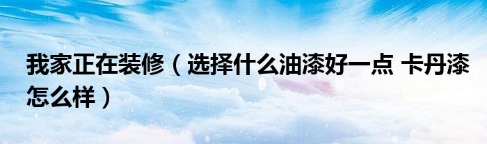 我家正在装修(选择什么油漆好一点 卡丹漆怎么样)