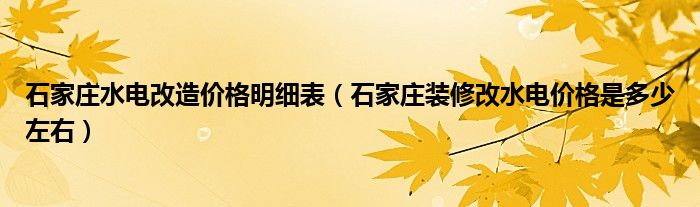 石家庄水电改造价格明细表(石家庄装修改水电价格是多少左右)