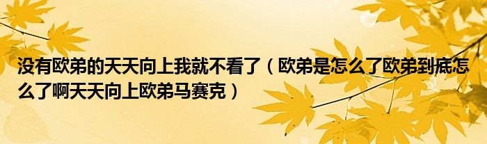没有欧弟的天天向上我就不看了(欧弟是怎么了欧弟到底怎么了啊天天向上欧弟马赛克)