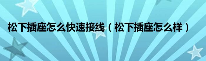 hello,我是51房产的小叶子,不少朋友对于松下插座怎么快速接线,松下插座怎么样还不是很清楚,接下来我给大家说一说