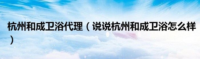 杭州和成卫浴代理(说说杭州和成卫浴怎么样)