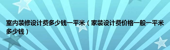 导读 大家好,精选小编来为大家解答以上的问题。室内装修设计费多少钱一平米,家装设计费价格一般一平米多少钱很多人还不知道,现在让我们一起来