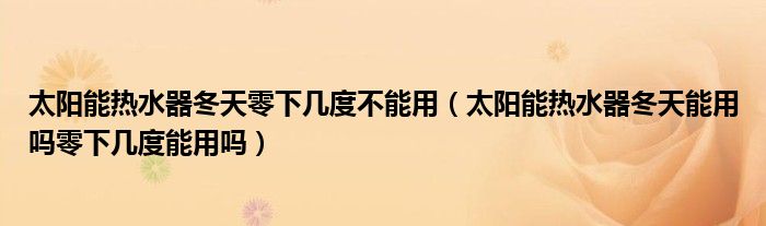 太阳能热水器冬天零下几度不能用(太阳能热水器冬天能用吗零下几度能用吗)