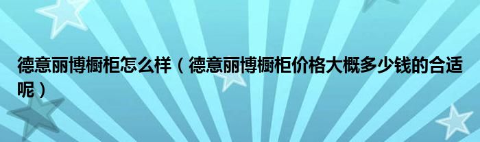 导读 大家好,精选小编来为大家解答以上的问题。德意丽博橱柜怎么样,德意丽博橱柜价格大概多少钱的合适呢很多人还不知道,现在让我们一起来看看