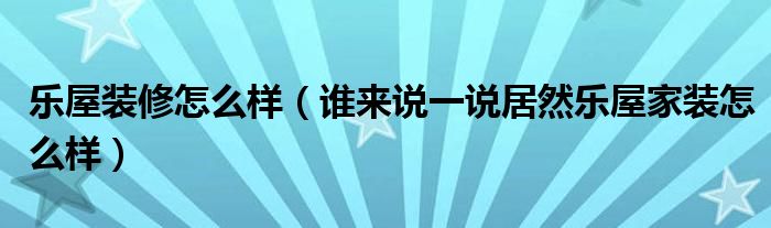 大家好,精选小编来为大家解答以上的问题。乐屋装修怎么样,谁来说一说居然乐屋家装怎么样很多人还不知道,现在让我们一起来看看吧!