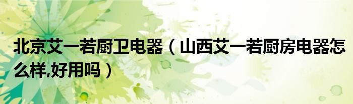 北京艾一若厨卫电器(山西艾一若厨房电器怎么样,好用吗)