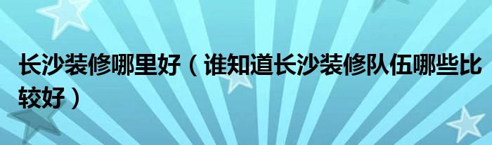长沙装修哪里好(谁知道长沙装修队伍哪些比较好)