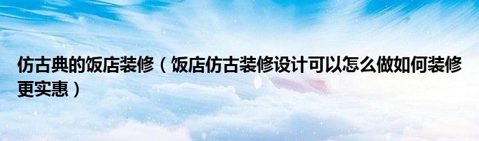 导读 大家好,精选小编来为大家解答以上的问题。仿古典的饭店装修,饭店仿古装修设计可以怎么做如何装修更实惠很多人还不知道,现在让我们一起来