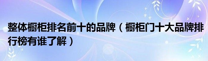 导读 大家好,精选小编来为大家解答以上的问题。整体橱柜排名前十的品牌,橱柜门十大品牌排行榜有谁了解很多人还不知道,现在让我们一起来看看吧
