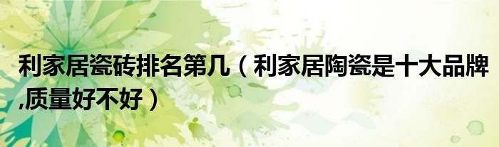利家居瓷砖排名第几(利家居陶瓷是十大品牌,质量好不好)