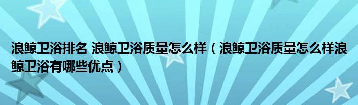 浪鲸卫浴排名 浪鲸卫浴质量怎么样(浪鲸卫浴质量怎么样浪鲸卫浴有哪些优点)