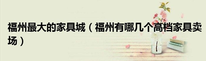 导读 大家好,精选小编来为大家解答以上的问题。福州最大的家具城,福州有哪几个高档家具卖场很多人还不知道,现在让我们一起来看看吧!1、福州