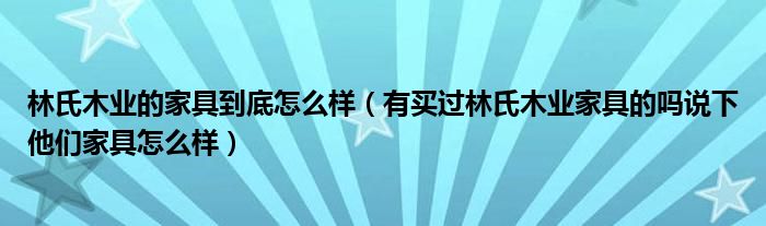 林氏木业的家具到底怎么样(有买过林氏木业家具的吗说下他们家具怎么样)
