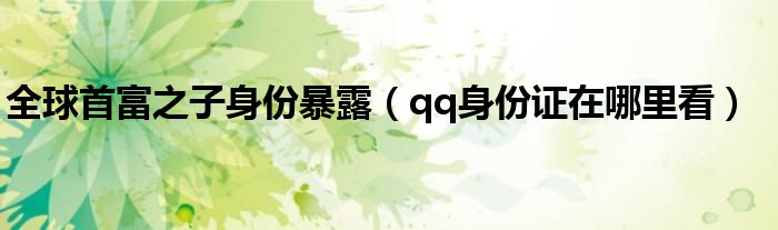 大家好,麟非来为大家解答以上问题,全球首富之子身份暴露,qq身份证在哪里看很多人还不知道,现在让我们一起来看看吧!