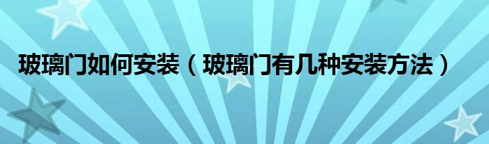 导读 大家好,精选小编来为大家解答以上的问题。玻璃门如何安装,玻璃门有几种安装方法很多人还不知道,现在让我们一起来看看吧!1、第一,安装