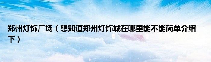 郑州灯饰广场(想知道郑州灯饰城在哪里能不能简单介绍一下)