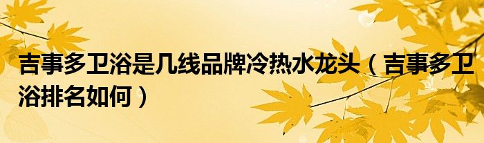导读 大家好,精选小编来为大家解答以上的问题。吉事多卫浴是几线品牌冷热水龙头,吉事多卫浴排名如何很多人还不知道,现在让我们一起来看看吧!