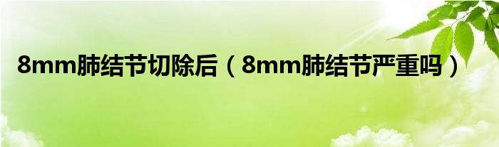 大家好,linda来为大家解答以上的问题。8mm肺结节切除后,8mm肺结节严重吗很多人还不知道,现在让我们一起来看看吧!