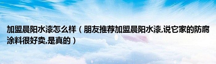 加盟晨阳水漆怎么样(朋友推荐加盟晨阳水漆,说它家的防腐涂料很好卖,是真的)
