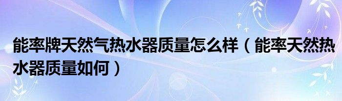 能率牌天然气热水器质量怎么样(能率天然热水器质量如何)