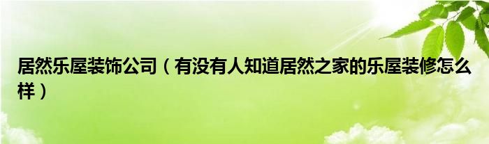 导读 大家好,精选小编来为大家解答以上的问题。居然乐屋装饰公司,有没有人知道居然之家的乐屋装修怎么样很多人还不知道,现在让我们一起来看看