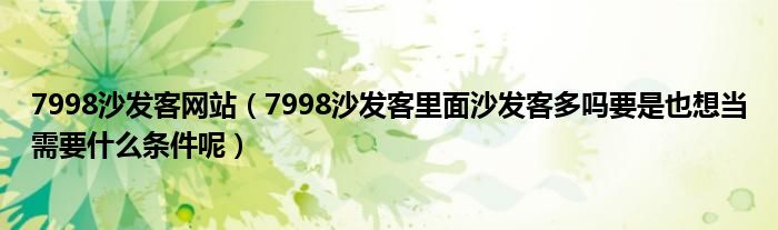 7998沙发客网站(7998沙发客里面沙发客多吗要是也想当需要什么条件呢)