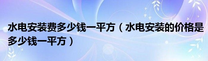 导读 大家好,精选小编来为大家解答以上的问题。水电安装费多少钱一平方,水电安装的价格是多少钱一平方很多人还不知道,现在让我们一起来看看吧