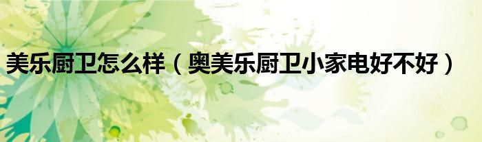 美乐厨卫怎么样(奥美乐厨卫小家电好不好)