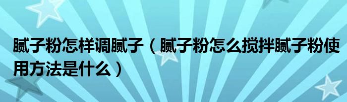 腻子粉怎样调腻子(腻子粉怎么搅拌腻子粉使用方法是什么)