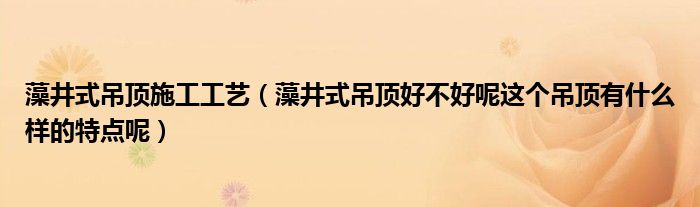 导读 大家好,精选小编来为大家解答以上的问题。藻井式吊顶施工工艺,藻井式吊顶好不好呢这个吊顶有什么样的特点呢很多人还不知道,现在让我们一