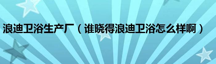 浪迪卫浴生产厂(谁晓得浪迪卫浴怎么样啊)
