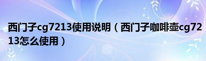 西门子cg7213使用说明(西门子咖啡壶cg7213怎么使用)