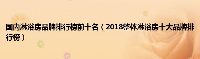 导读 大家好,精选小编来为大家解答以上的问题。国内淋浴房品牌排行榜前十名,2018整体淋浴房十大品牌排行榜很多人还不知道,现在让我们一起来看