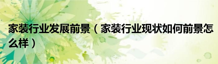 家装行业发展前景(家装行业现状如何前景怎么样)