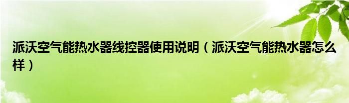派沃空气能热水器线控器使用说明(派沃空气能热水器怎么样)
