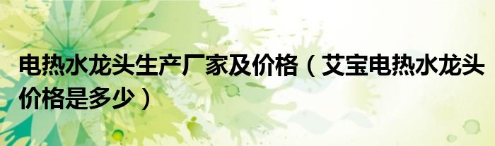 导读 大家好,精选小编来为大家解答以上的问题。电热水龙头生产厂家及价格,艾宝电热水龙头价格是多少很多人还不知道,现在让我们一起来看看吧!