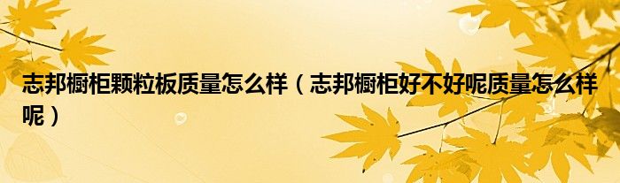 导读 大家好,精选小编来为大家解答以上的问题。志邦橱柜颗粒板质量怎么样,志邦橱柜好不好呢质量怎么样呢很多人还不知道,现在让我们一起来看看