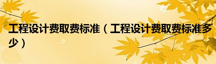 导读 大家好,小编慧慧来为大家解答以上的问题。工程设计费取费标准,工程设计费取费标准多少很多人还不知道,现在让我们一起来看看吧!1、工程