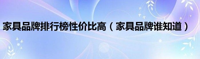 家具品牌排行榜性价比高(家具品牌谁知道)