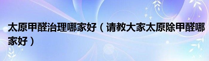 太原甲醛治理哪家好(请教大家太原除甲醛哪家好)