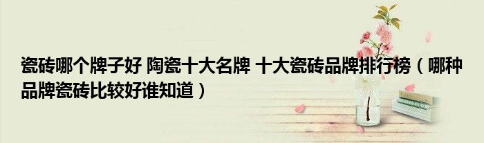 导读 大家好,精选小编来为大家解答以上的问题。瓷砖哪个牌子好 陶瓷十大名牌 十大瓷砖品牌排行榜,哪种品牌瓷砖比较好谁知道很多人还不知道,