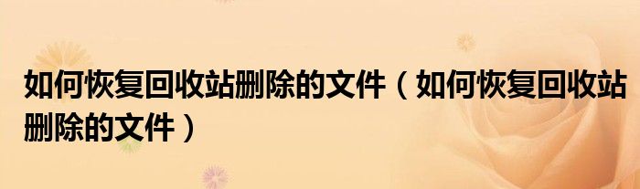 如何恢复回收站删除的文件(如何恢复回收站删除的文件)