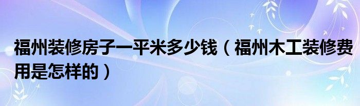 导读 大家好,精选小编来为大家解答以上的问题。福州装修房子一平米多少钱,福州木工装修费用是怎样的很多人还不知道,现在让我们一起来看看吧!