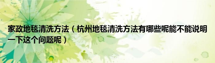导读 大家好,精选小编来为大家解答以上的问题。家政地毯清洗方法,杭州地毯清洗方法有哪些呢能不能说明一下这个问题呢很多人还不知道,现在让我