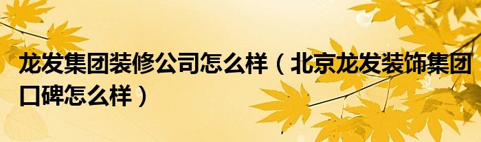 龙发集团装修公司怎么样(北京龙发装饰集团口碑怎么样)